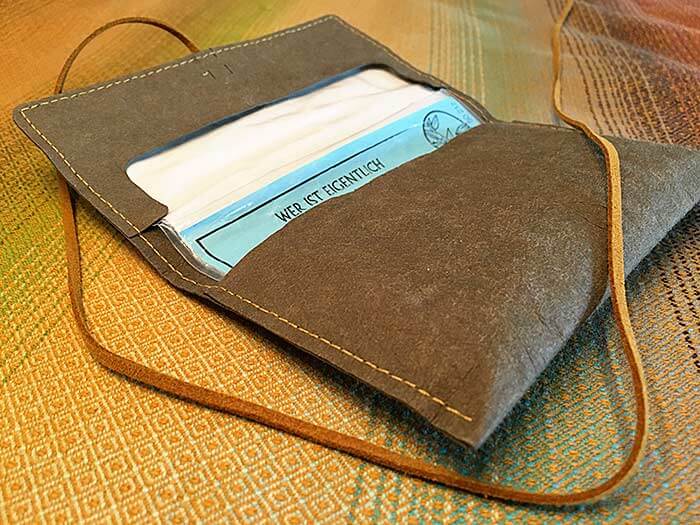 Die veganen Tabakbeutel werden in liebevoller Handarbeit in meiner kleinen Manufaktur gefertigt. Durch das einzigartige Material ist jedes Werk ein Unikat. Anfangs noch recht kompakt, wird das vegane Leder im Gebrauch immer geschmeidiger und passt sich so in seiner Struktur jedem Besitzer individuell an, ähnlich wie bei echtem Leder.